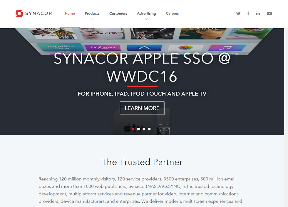 2) Synacor Media Founded in 1998, Synacor is the trusted technology development, multi platform services and revenue partner for video, internet and communications providers, device manufacturers, and enterprises. Synacor delivers modern, multi screen experiences and advertising to their consumers that require scale, actionable data and sophisticated implementation.